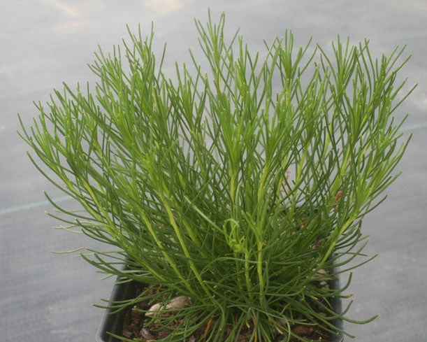 Bigelowia nuttallii, or Rayless Goldenrod, is a tough, evergreen perennial with rayless yellow flowers in late summer. Bigelowia nuttallii has narrow grassy leaves on slim upright stems up to 20″ that are topped by broad, brush-like clusters of goldenrod-like blooms that attract late summer pollinators. Great for rock garden and dry areas.